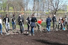 Дети приводят в порядок пришкольный участок, перекапывают грядки, сажают цветы, морковь, свеклу, лук и другие культуры.