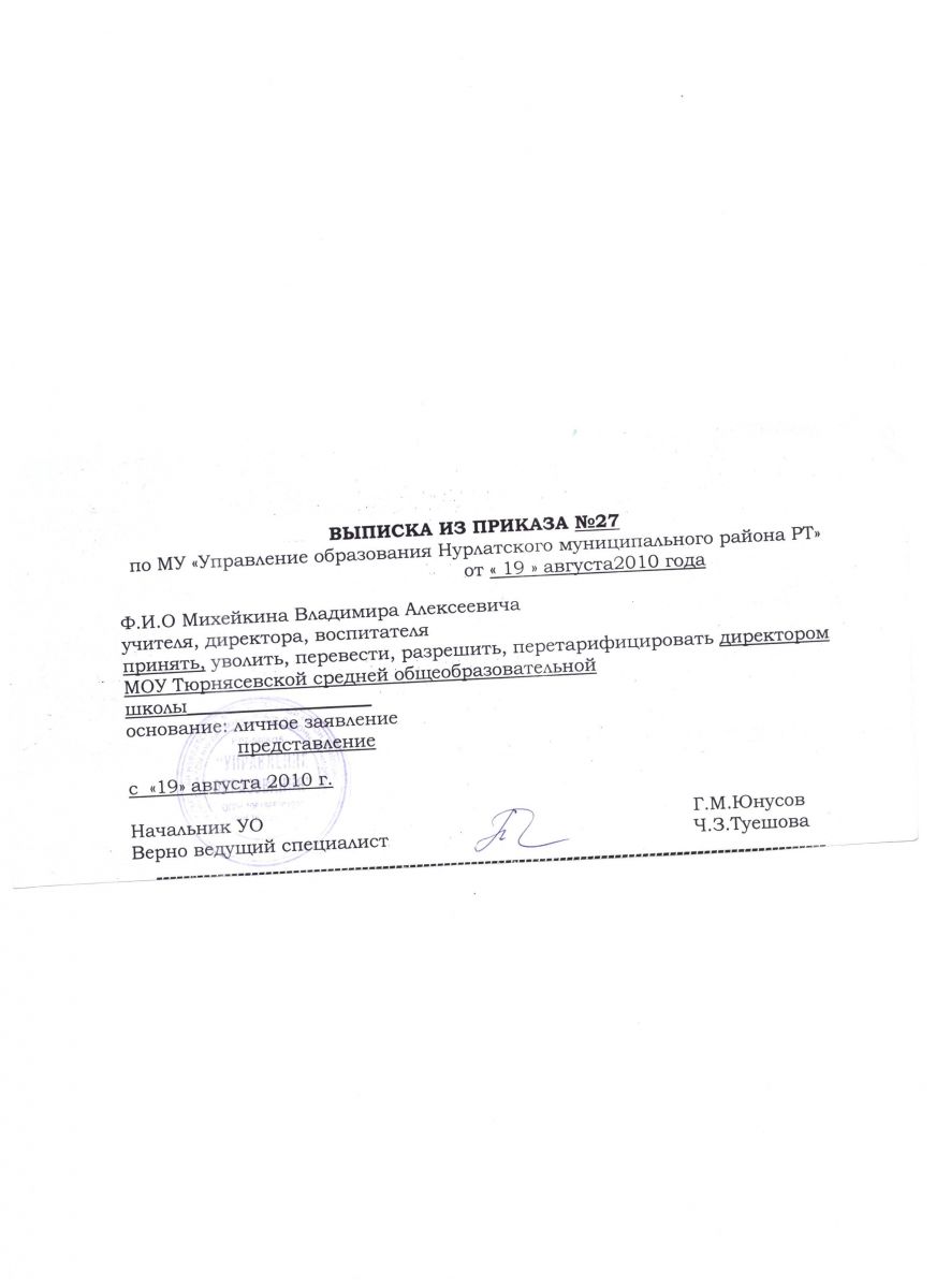 Приказ о назначении директора школы