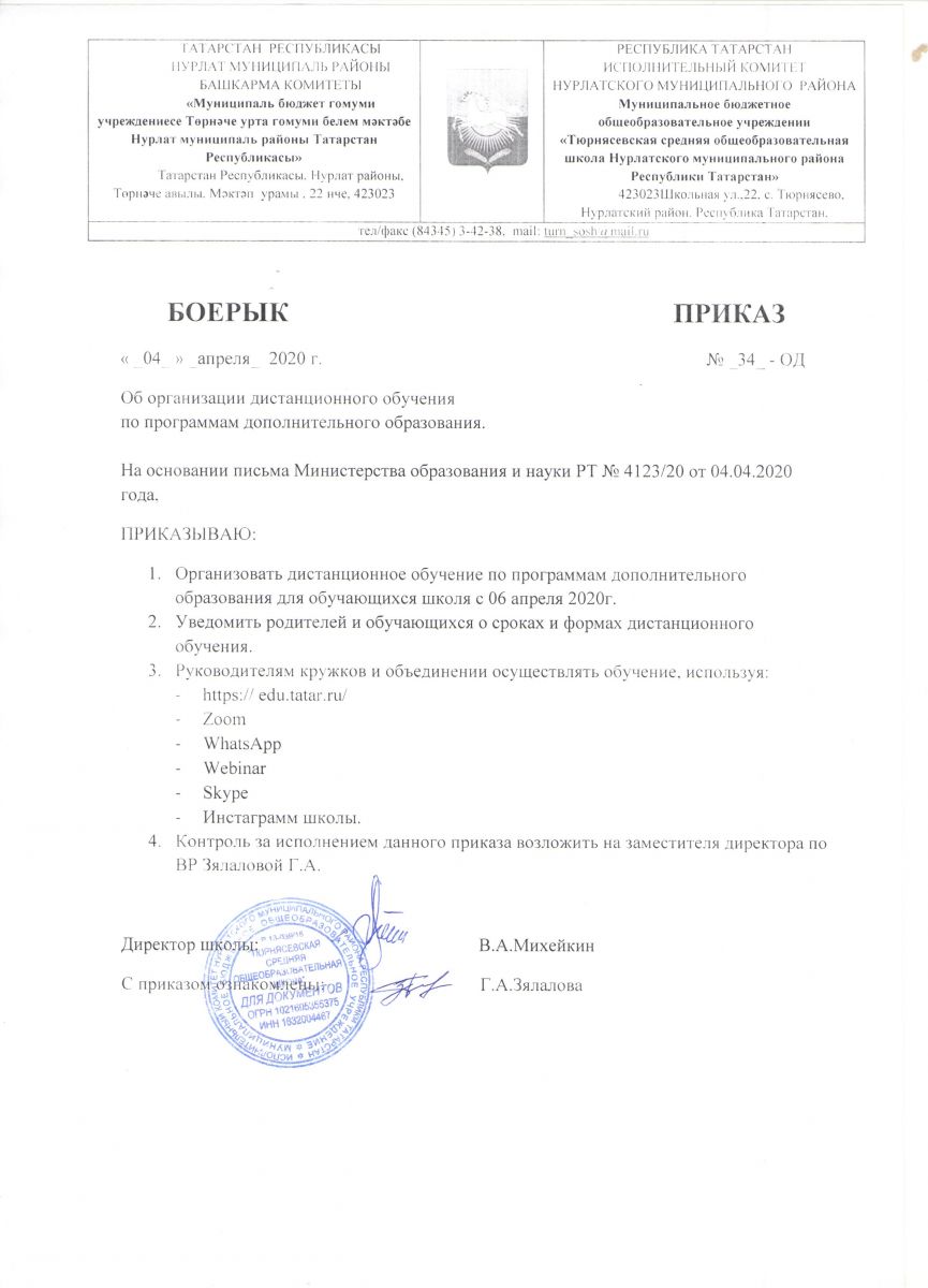 Приказ об организации дополонительного_образования в условиях дистанционного обучения