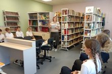 В рамках Месячника школьных библиотек библиотекарь Романова Л.Н. провела игру-викторину "Ходит сказка по Земле" с кружковцами "Книгочеи".