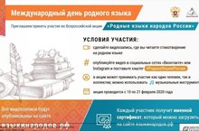 На основании письма Директора Департамента государственной политики в сфере общего образования Министерства просвещения Российской Федерации Ж.В.Садовниковой Министерство образования и науки Республики Татарстан информирует о проведении с 10 по 21 февраля 2020 года Всероссийской акции «Родные языки России», посвященной Международному дню родного языка (далее – Акция).