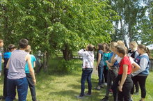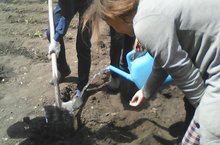 Пришкольный лагерь труда и отдыха "Искорка" заложил опытный участок. Были посеяны разные культуры. В течение лета будут проводить опыт по росту растений./ Мәктәп лагеры укучылары тәҗрибә участогында эшләделәр,төрле культуалы үсемлекләр утырттылар.