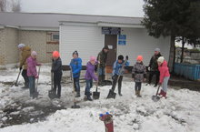 В филиале д.Ерепкино провели субботник по очистке снега на территории школы.