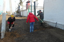 Школьный субботник 09.04.2016 В филиале д.Аксумла идет субботник.