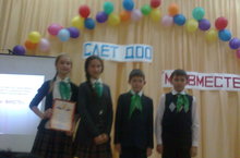 17 ноября делегаты дружины ДОО СНТ "Республика мальчишек и девчонок",школьного ученического самоуправления "Лидер" приняли участие на районном Слете детских общественных организаций "Мы вместе", где наградили активистов ДОО, победителей муниципального этапа республиканского конкурса "Старт наследников - 2015". Соловьева Татьяна, обучающаяся 6 класса, стала победителем в номинации "Девиз".