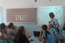 У нас учат: 21 учитель/ 21 укытучы 4 воспитателя/4 тәрбияче