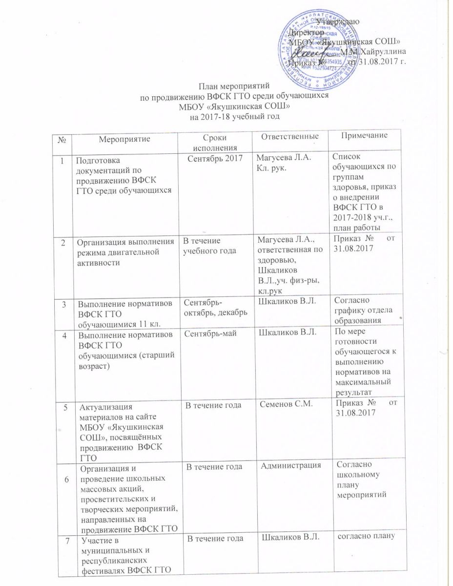 Приказ по школе о ГТО / ГТО буенча мәктәп әмере