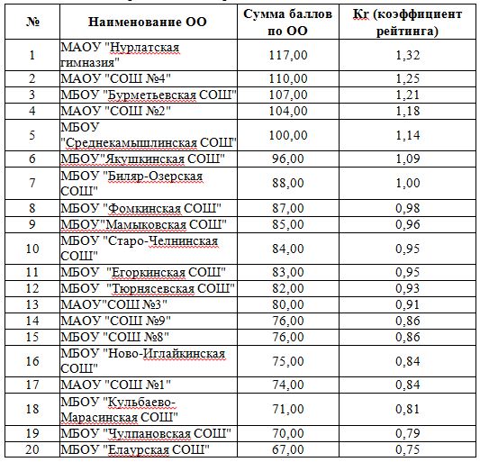 Рейтинг общеобразовательных школ Нурлатского муниципального района повышенного уровня и средних общеобразовательных школ