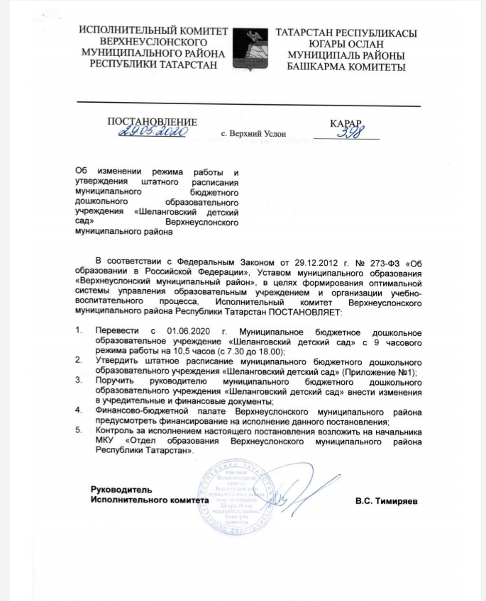 МБДОУ "Шеланговский детский сад" Верхнеуслонского муниципального района РТ
