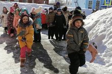 Воспитанники средней, старших и подготовительной группы проводили зиму с радостными песнями, танцами, играми и блинами. // Урта, өлкән һәм мәктәпкә әзерлек төркеме балалары күңелле җырлар, биюләр, тәмле коймаклар белән кышны озаттылар.