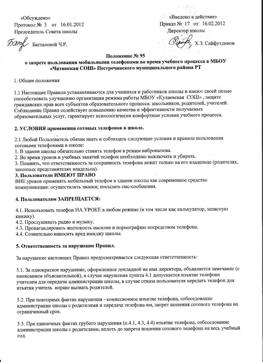 Положение о запрете мобильных телефонов