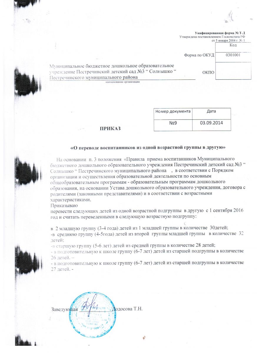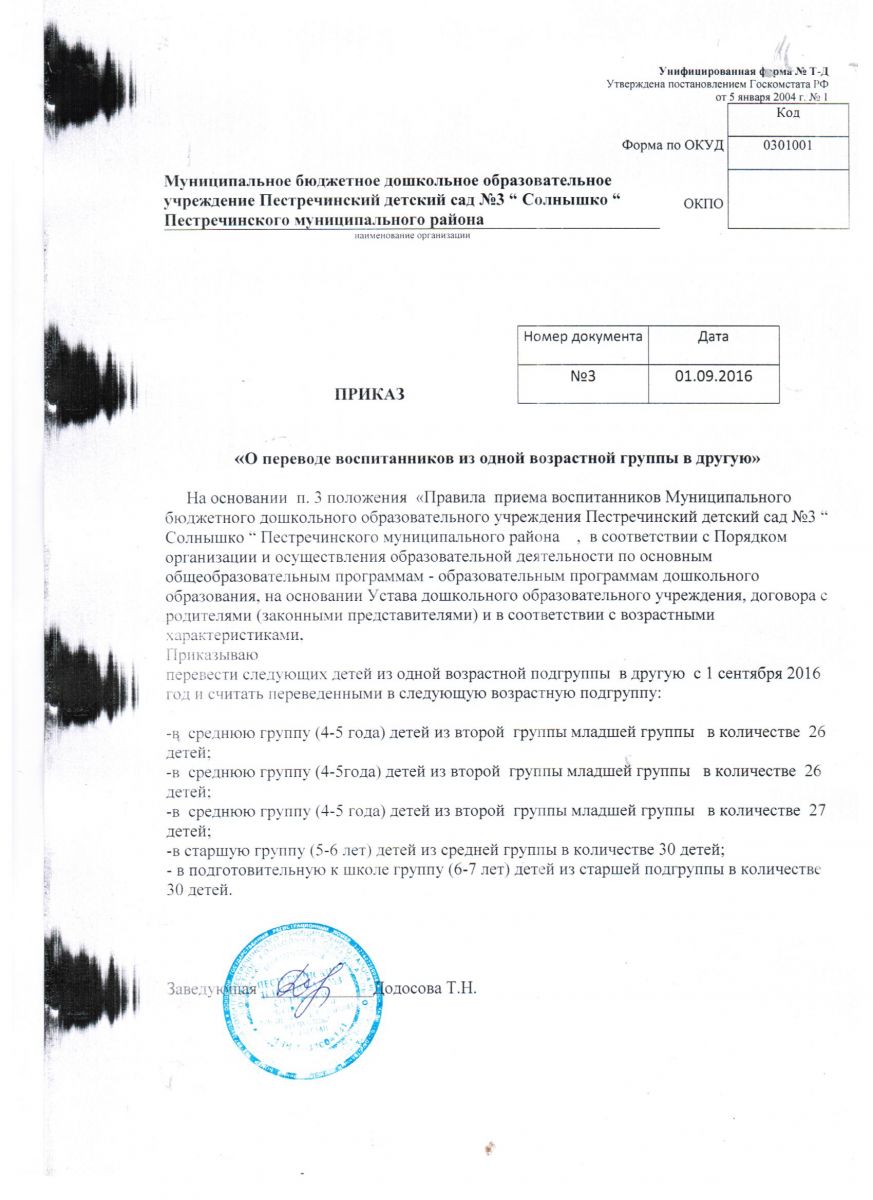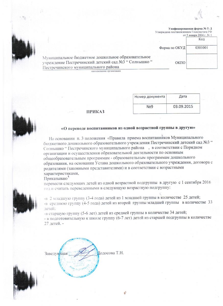 Приказ на критерии оценки эфективности деятельности работников МБДОУ №3 "Солнышко"