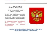 2024 год в стране Годом семьи! 11.01.2024 Президент России Владимир Путин объявил .2024 год в стране Годом семьи! «В целях популяризации госполитики в сфере защиты семьи, сохранения традиционных семейных ценностей постановляю провести в 2024 году в России Год семьи», — говорится в документе.