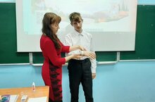 Урок биологии 06.12.2023 В рамках декады предметников учитель Юсупова Н.В. провела открытый урок по биологии с учениками 9б класса "Первая помощь при кровотечении"