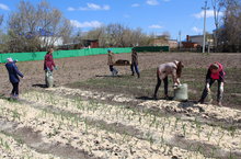 Учащиеся школы начали благоустройство пришкольной территории - посадили деревья и кустарники