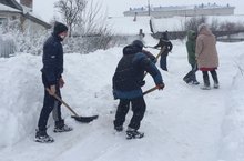 "Тимуровский десант" 05.02.2018 Учащиеся и педагоги школы оказали тимуровскую помощь ветерану школы Панариной П.Я., расчистили дорожки от снега.