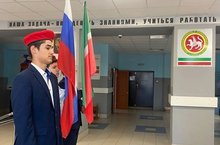 Учебная неделя началась с выноса флагов Российской Федерации и Республики Татарстан 18.09.2023