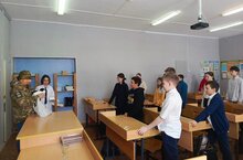 В нашу школу пришел гость, который является участником СВО , для того чтобы поблагодарить одну из учениц за письмо , которые учащиеся писали солдатам, и подарил ей небольшой памятный подарок