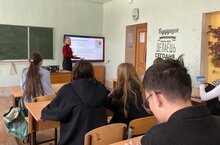 Участники РДДМ провели классный час для 9х классов на тему «Россия выбирает Президента-семья выбирай надежность и процветание!». 01.03.2024