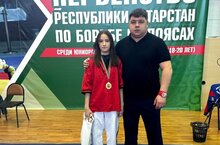 Чемпионка первенства Республики Татарстан по борьбе на поясах в в/к 52 кг Демидова Елизавета 01.03.2024