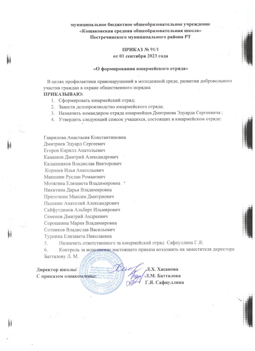 - Приказ "О формировании юнармейского отряда" на 2023-2024 уч. год