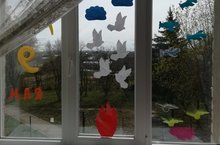 Кулаевксий детский сад «Колокольчик» принял участие в акции «Окна Победы». Наши воспитанники вместе с родителями и педагогами украсили окна своих групповых помещений и домов узнаваемыми фигурами, поздравительными надписями, вечным огнем, салютом и фотографиями. Тем самым мы смогли выразить, благодарность всем тем, кто подарил нам мирное небо./ Кулай авылының "Кыңгырау" балалар бакчасы «Җиңү тәрәзәләре»акциясендә катнашты. Безнең тәрбияләнүчеләр ата-аналар һәм педагоглар белән бергә төркем биналарының һәм йортларның тәрәзәләрен танылган фигуралар, котлау язулары, Мәңгелек ут, салют һәм фоторәсемнәр белән бизәделәр. Шул рәвешле без тыныч күк йөзе бүләк иткән һәркемгә рәхмәтебезне белдерә алдык.