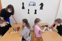 Сегодня, в детском саду состоялся шахматно- шашечный турнир среди воспитанников подготовительной группы, в котором приняли участие 8 детей. Целью этого мероприятия было создание условий для интеллектуального развития детей старшего дошкольного возраста, для проявления интереса к этой игре, развивающей логику, внимание, мышление ребенка. Турнир проходил по всем правилам в атмосфере торжественности, значимости данной игры./ Бүген, балалар бакчасында мәктәпкә әзерлек төркемендә тәрбияләнүчеләр арасында шахмат-шашка турниры булып узды, анда 8 бала катнашты. Әлеге чараның максаты-өлкән яшьтәге мәктәпкәчә яшьтәге балаларның интеллектуаль үсеше өчен шартлар тудыру, әлеге уен белән кызыксыну уяту, баланың логикасын, игътибарын, фикерләвен үстерү иде. Турнир барлык кагыйдәләр буенча да тантана атмосферасында, әлеге уенның әһәмияте турында барды.