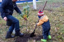 Безнең балалар бакчасында "Агач утырт" акциясе дәвам итә. Бүген Шәрифгалиевлар гаиләсе балалар бакчасы территориясендә чия куаклары утыртты.