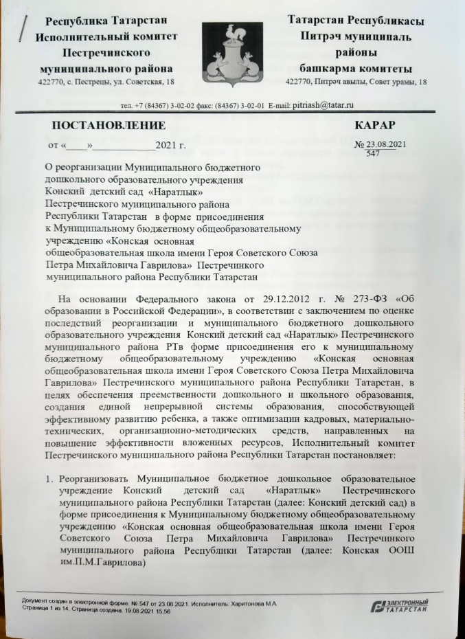 муниципальное бюджетное общеобразовательное учреждение «Конская основная общеобразовательная школа имени Героя Советского Союза Петра Михайловича Гаврилова» Пестречинского муниципального района Республики Татарстан/ Татарстан Республикасы Питрәч муниципаль районы башкарма комитеты муниципаль бюджет гомуми белем бирү учреждениесе «Советлар Союзы Герое Петр Михайлович Гаврилов исемендәге Күн төп гомуми белем бирү мәктәбе»