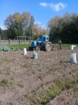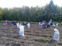 Бакчада укучылар һәм мәктәп коллективы белән бәрәңге уңышы җыеп алынды