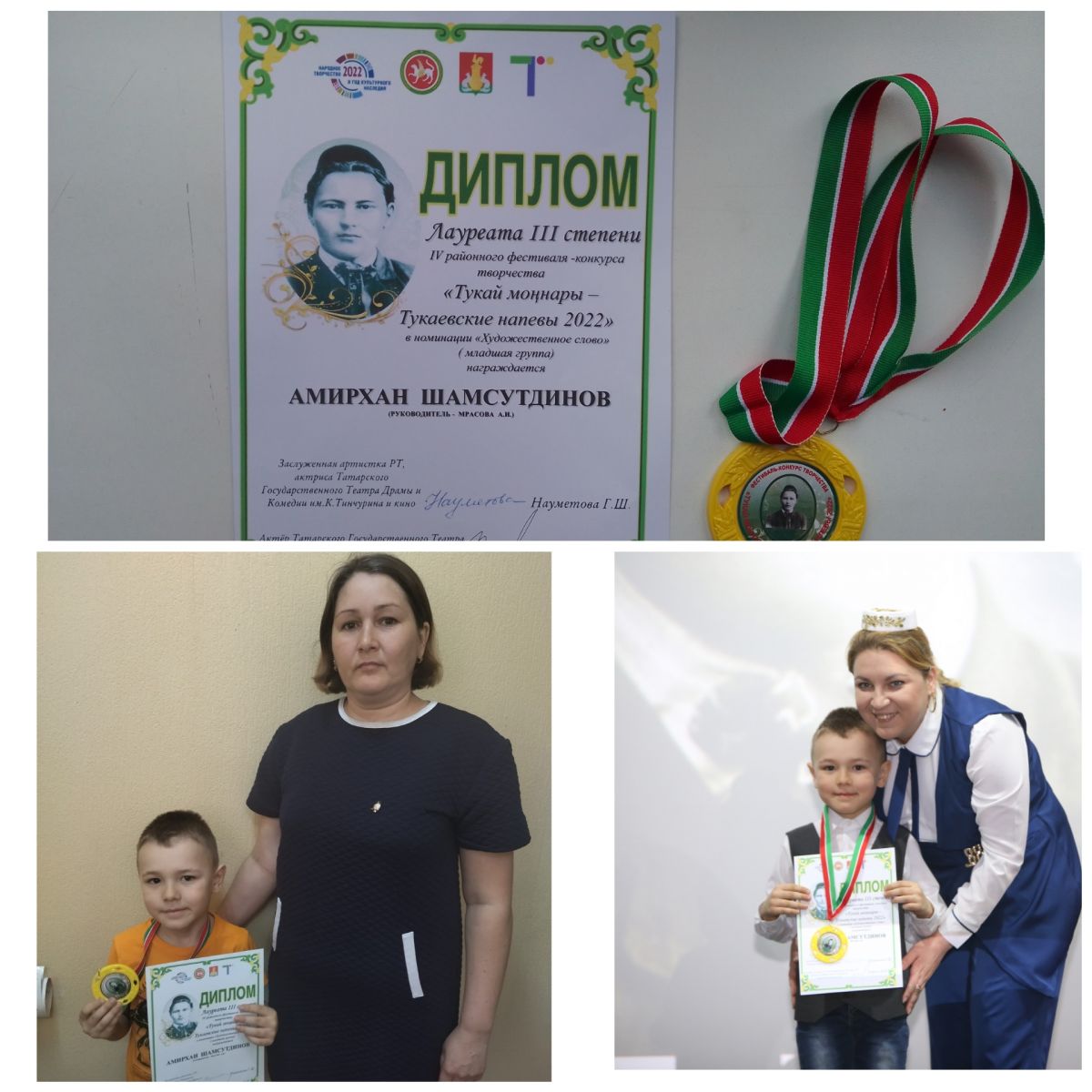 Воспитанник старшей группы Шамсутдинов Амирхан (руководитель Мрасова А.И.) стал лауреатом 3 степени районного конкурса "Тукай моңнары".