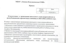 Приказ о подготовке школьного этапа всероссийских и республиканских предметных олимпиад в 2021-2022 учебном году 14.09.2021