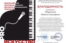 Всероссийский фестиваль-конкурс детского и юношеского творчества «PROискусство» 26.12.2022