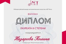 Всероссийском конкурсе для обучающихся по предмету общее фортепиано «Royal time!» 21.04.2023