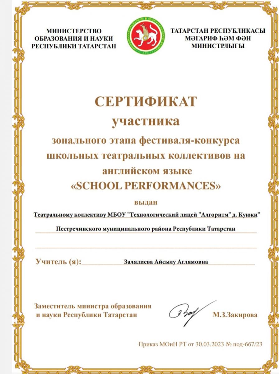 Муниципальное бюджетное общеобразовательное учреждение "Технологический лицей "Алгоритм" д.Куюки Пестречинского муниципального района Республики Татарстан/Татарстан Республикасы Питрәч районы Көек авылының «Алгоритм» технологик лицее» гомуми белем муниципаль бюджет учреждениесе