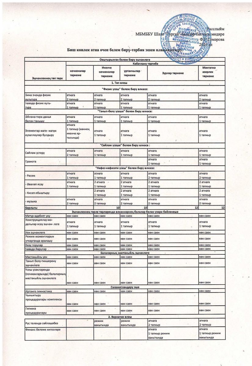 Основная образовательная программа дошкольного образования МБДОУ Шалинский детский сад «Тургай» Пестречинского муниципального района РТ