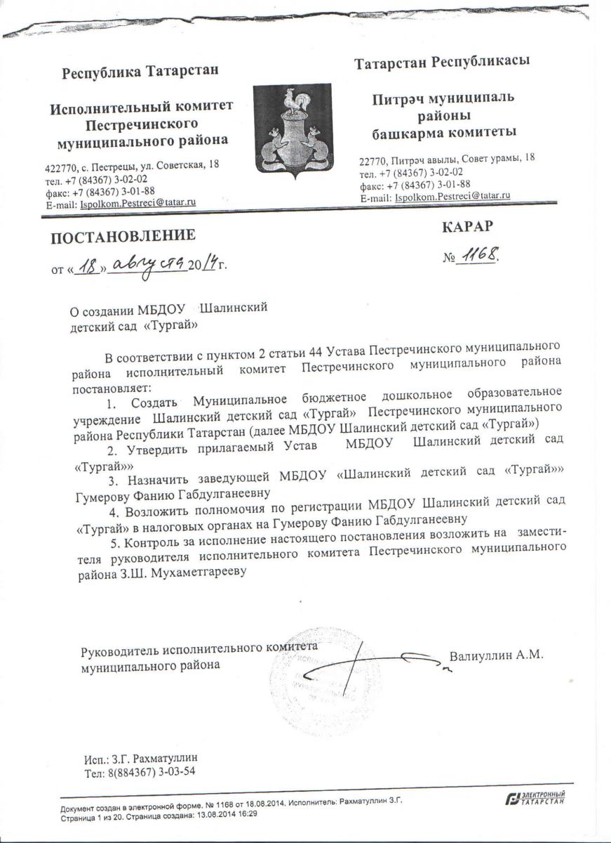 | Короткое название: | МБДОУ Шалинский детский сад «Тургай»\\МБМББУ Шәле "Тургай" балалар бакчасы |