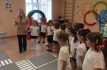 Воспитатели и воспитанники нашего детского сада совместно с начальником отделения профилактики ГБУ "БДД" Егоровой Т.А. провели открытое занятие "Соблюдаю ПДД".