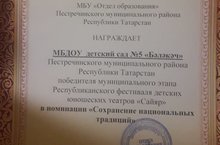 Спектакль, созданный нашими педагогами и воспитанниками, "Шалкан" на тарском языке выиграл на фестивале детских юношеских театров среди дошкольных и общеобразовательных учреждений Республики Татарстан "Сайяр".