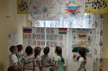 В нашем детском саду прошло мероприятие, посвященное Дню народного единства. Воспитанники подготовили рисунки для оформления выставки «Дружат дети всей Земли!».