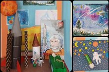 Выставка поделок и рисунков ко Дню космонавтики. 12.04.2022