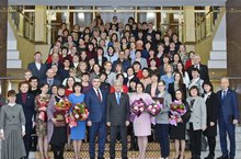 Наши учителя татарского языка, обществознания и истории сегодня на ежегодной встрече с Председателем Государственного Совета РТ Ф.Х. Мухаметшиным, посвященной 100-летию ТАССР