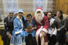 Члены отряда нарядились в одежды Деда Мороза и Снегурочки и поздравили детей с ограниченными возможностями с новым годом, преподнесли им подарки.