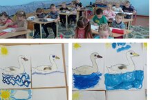 Развивать представление детей о перелётных птицах гусях.Воспитывать любовь к природе, птицам, окружающему миру; воспитывать аккуратность, интерес к изодеятельности, желание заканчивать работу; проявлять интерес к работам других детей.