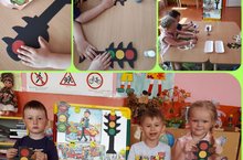 Аппликация в младшей группе "Светофор" На занятии дети учились наклеивать круги на прямоугольник, чередуя их последовательность. Объясняли, что обозначает каждый цвет светофора.