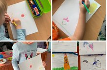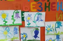 Воситанники младшей разовозрастной группы сделали рисунки на тему: Последние цветы осени.