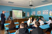Школьники рассуждали о деятельности волонтеров, посмотрели видеообращение финалистов премии «Мы вместе» и выполнили интерактивные задания. -