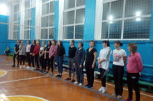 В большом спортзале состоялась товарищеская игра по волейболу среди Совета Мам и учащихся (девушек) школы.