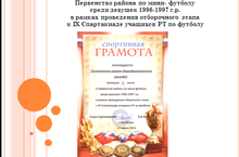 Команда школы по футболу среди девушек заняла 1 место Первенстве района по мини- футболу среди девушек 1996-1997 г.р. в рамках проведения отборочного этапа к IX Спартакиаде учащихся РТ по футболу