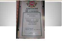 11 ноября на базе МБОУ ДОД КДЮСШ прошло Первенство района по баскетболу среди юношей.Наша команда заняла 3 место. Молодцы!!!
